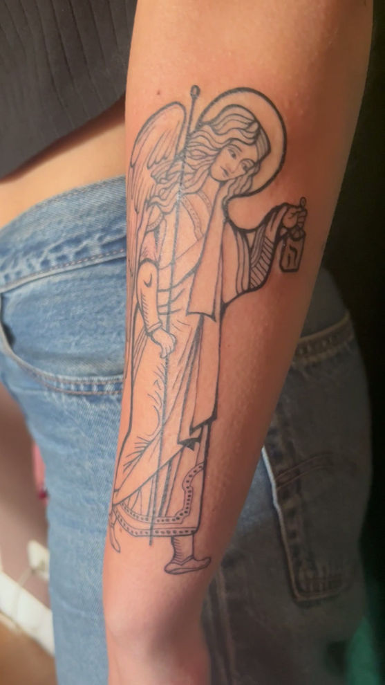 Je ne tatoue pas tous les symboles, seulement ceux que j'étudie en profondeur, qui sont alignés avec mes valeurs et qui viennent soutenir votre foi. Je privilégie les symboles chrétiens mais pas que, mon cœur est ouvert à toutes les traditions, dans la mesure du respect de celle-ci, sans appropriation ni déformation.