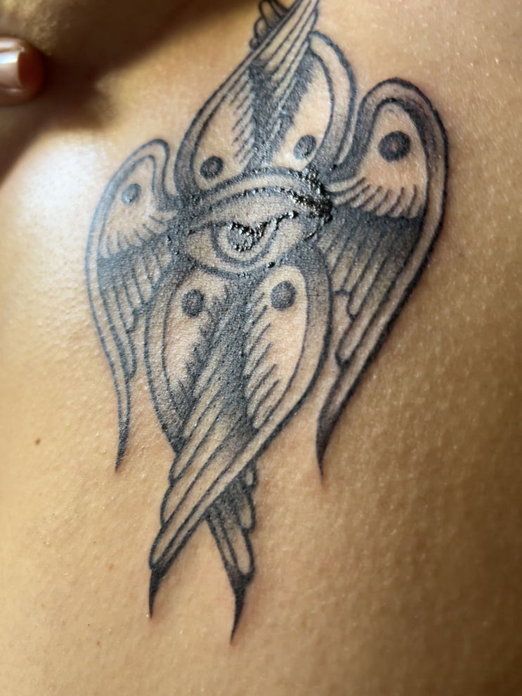 Réactualisation de cette pratique ancienne et universelle, le tatouage que je vous propose est un hommage à une foi vivante qui brûle dans le cœur de ceux et celles qui cherchent en eux. Depuis 2017, je tatoue des peaux porteuses d’âmes en quête de sens : tournants de vie, rémission de maladie, accompagnement de deuil, de changement important ou de projet en construction… De nombreuses personnes sont venues de loin pour venir encrer des symboles, qui témoignent de leur expérience de la vie et encrent leur volonté d’appartenir à plus grand.